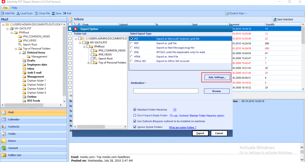 Метод 2 # Восстановить файл PST с помощью Scanpst.exe