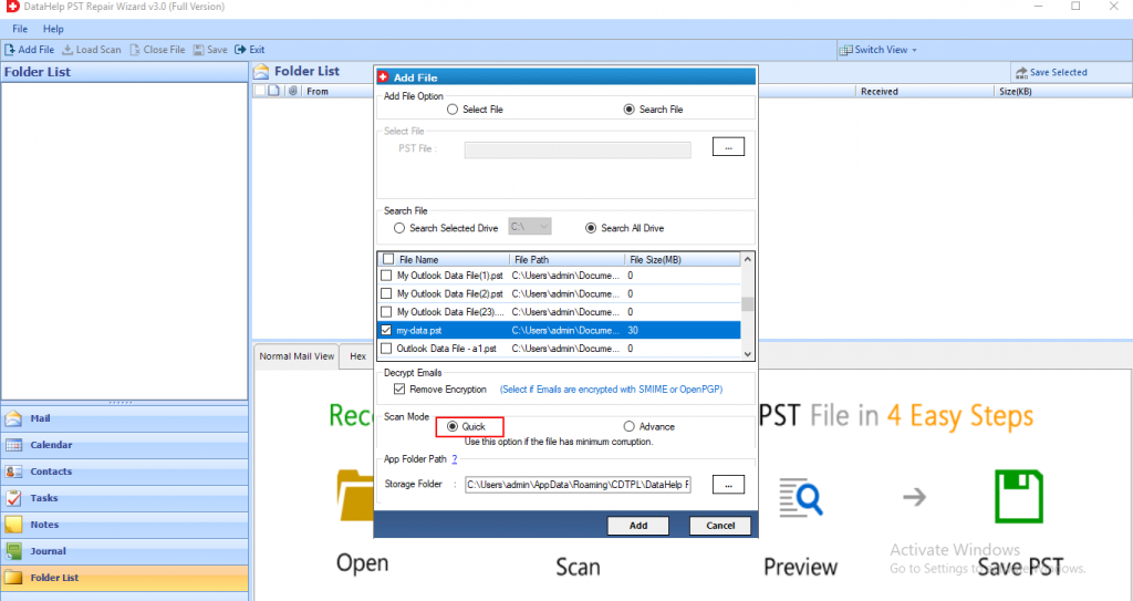 Шаг 1: Нажмите кнопку «Добавить файл», чтобы вставить поврежденные файлы PST.