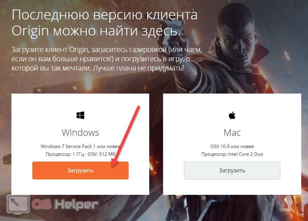 Нажмите Загрузить на странице Origin или пройдите по одной из ссылок выше, чтобы запустить загрузку клиента Origin. По завершении загрузки следуйте инструкциям мастера установки, чтобы установить новейшую версию Origin.