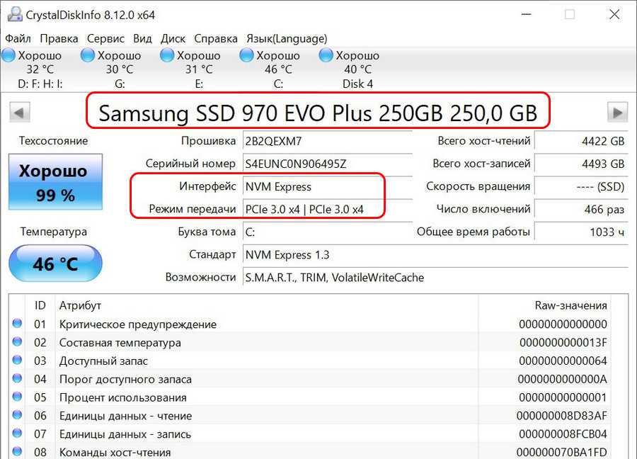Кроме того, CrystalDiskInfo дает нам еще одну важную информацию. Окно программы показывает, какой диск установлен SSD или HDD. Это важная информация, потому что HDD в принципе не способен работать быстрее, чем на SATA II