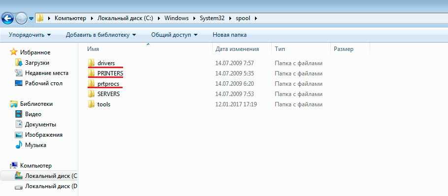 Очистка или замена папки spool