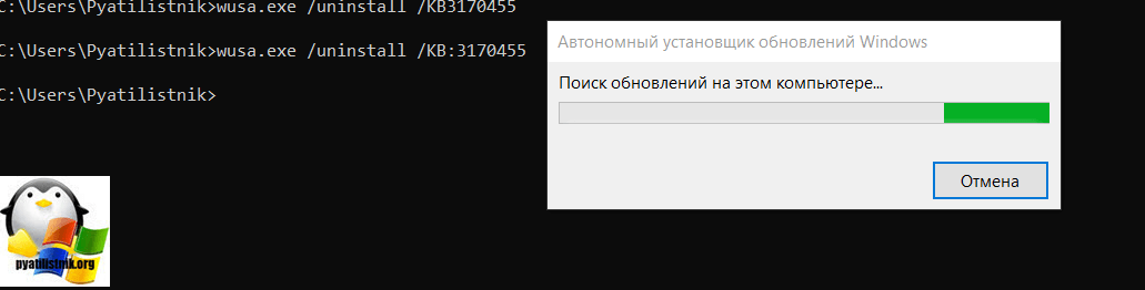 Удаление проблемного обновления KB5005565