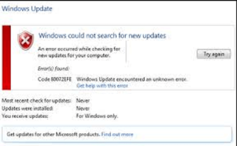 Что такое ошибка Центра обновления Windows 80072efe