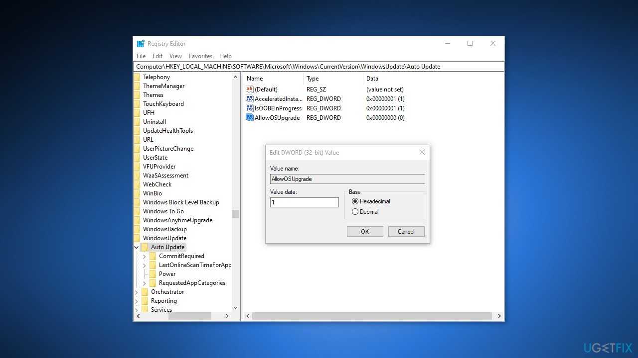 Если очистка папки Software Distribution не сработала, давайте отредактируем реестры и посмотрим, поможет ли это. Для некоторых пользователей проблема была вызвана неправильно настроенным редактором реестра и была легко решена с помощью следующих шагов.