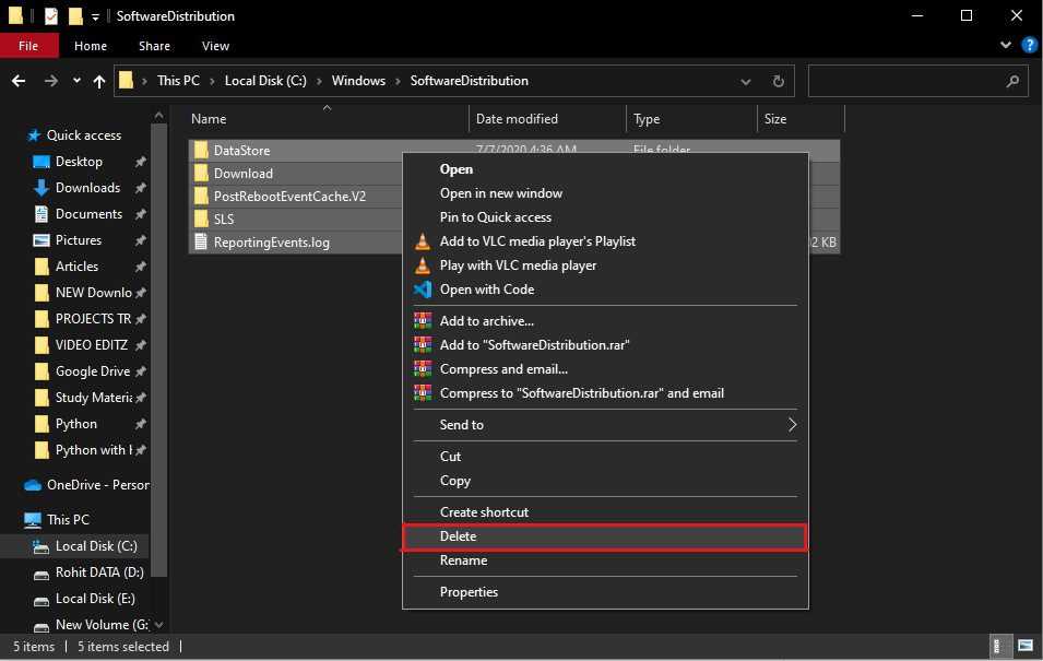 Теперь перейдите в папку C:WindowsSoftwareDistributionDownload и удалите все файлы и папки внутри. Вы можете нажать Ctrl + A, чтобы выбрать все содержимое, а затем Ctrl + D, чтобы удалить его.