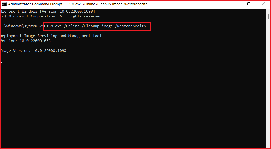 - DISM /Online /Cleanup-Image /RestoreHealth