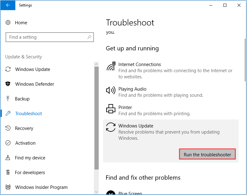 Solution 2. Run Windows Update Troubleshooter