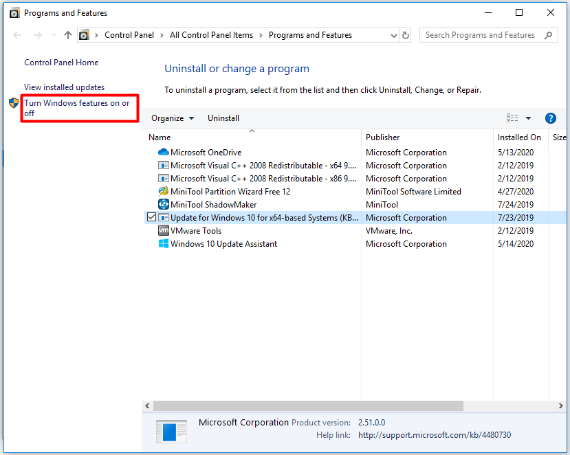 - Next, you click on ‘Turn Windows Features On or Off’.