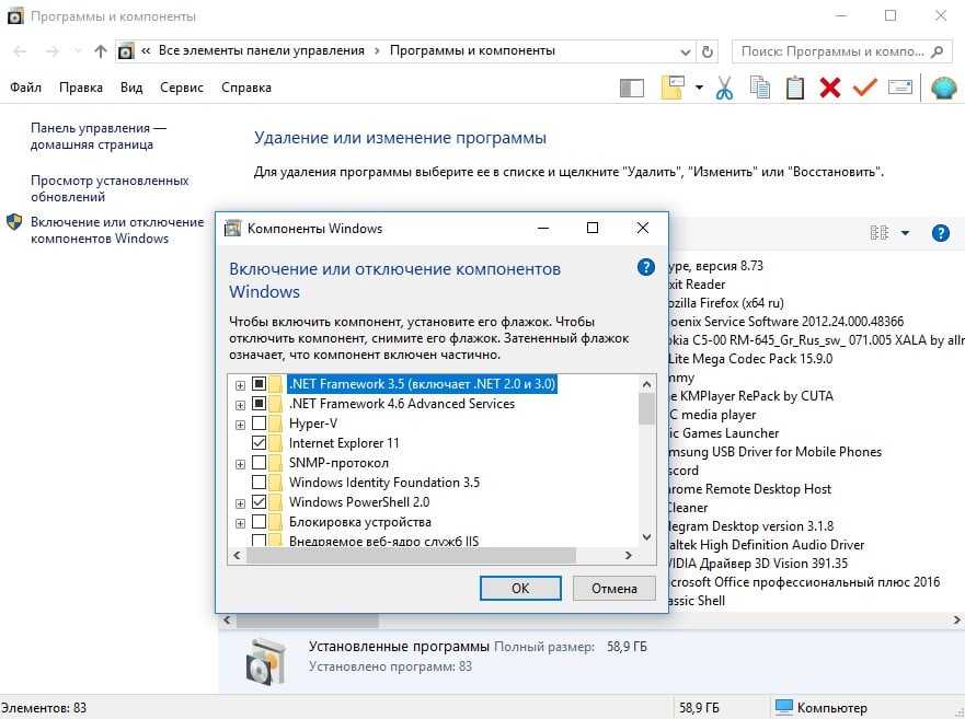 - Попробуйте выполнить установку через «Включение и отключение компонентов Windows».