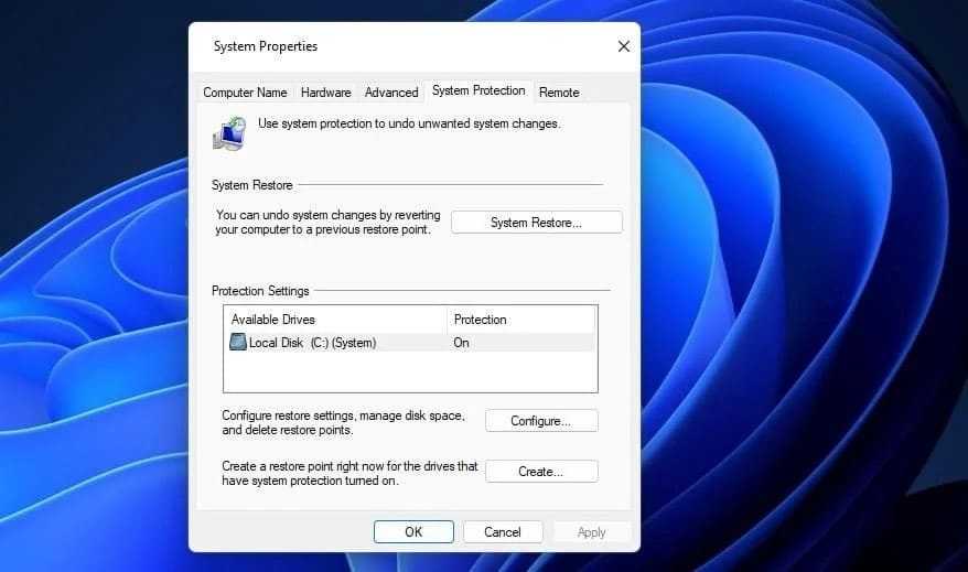 - Выберите результат поиска Создайте точку восстановления системы.