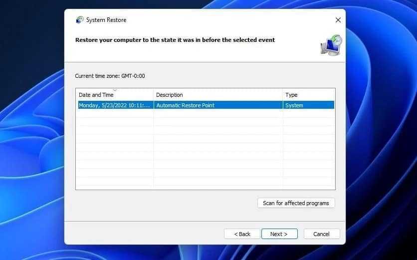 - Нажмите «Далее», чтобы просмотреть доступные точки восстановления.