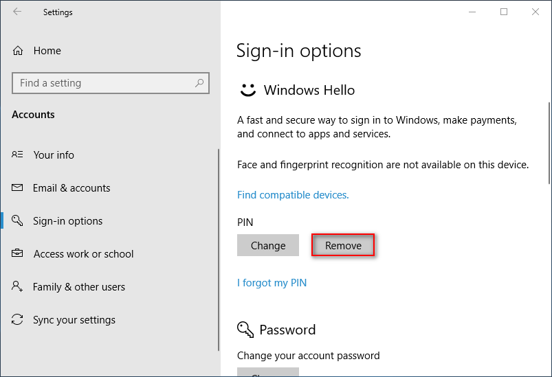 - Добавить ПИН-код ничего не делает : иногда вы не можете ничего сделать в окне входа в систему с помощью PIN-кода.