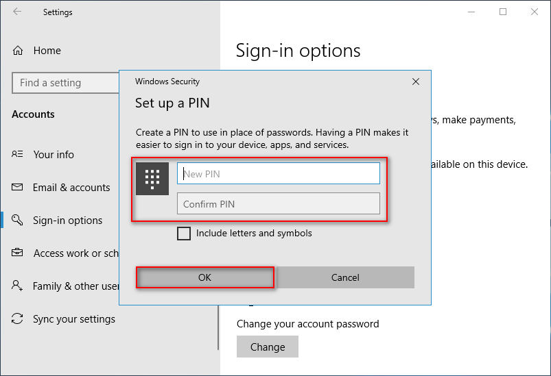 - Установите новый PIN-код и введите его дважды. Затем щелкните Хорошо подтвердить.