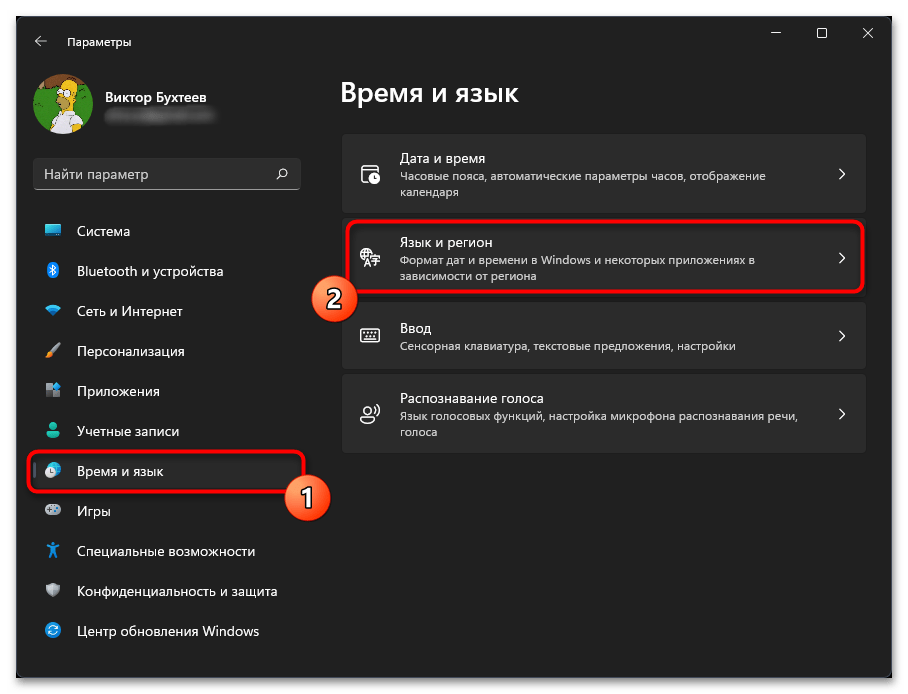 На панели слева выберите раздел «Время и язык», затем откройте категорию «Язык и регион».