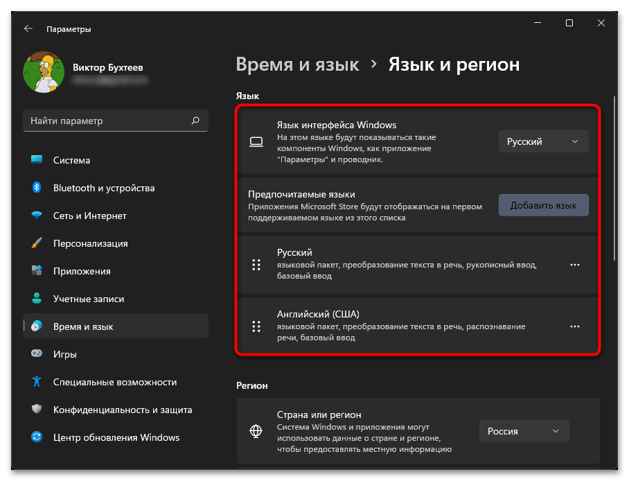 Если есть необходимость, можно дополнительно поменять язык интерфейса и установить предпочитаемые языки для раскладки, но на итоговый результат в плане поиска апдейтов это повлиять не должно.