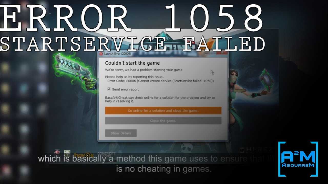 Error 1058 or Error Code: 20006 (Cannot create service StartService failed: 1058) usually occurs when you install a game for the first time.