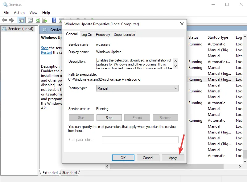 После включения отключенной службы она должна запуститься немедленно. Если это не так, вы должны выполнить шаги, описанные выше.