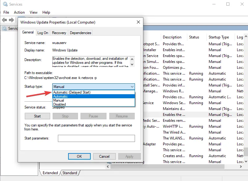 Если служба отключена, откройте Тип запуска и выберите параметр Автоматически.