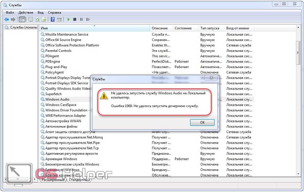 Результатом выполнения последнего шага в предыдущей инструкции может стать окно со следующим содержанием: «Не удалось запустить дочернюю службу».
