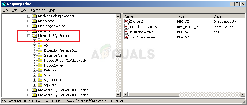 HKEY_LOCAL_MACHINE ПРОГРАММНОЕ ОБЕСПЕЧЕНИЕ Microsoft Microsoft SQL Server HKEY_LOCAL_MACHINE SOFTWARE Microsoft MSSQLServer