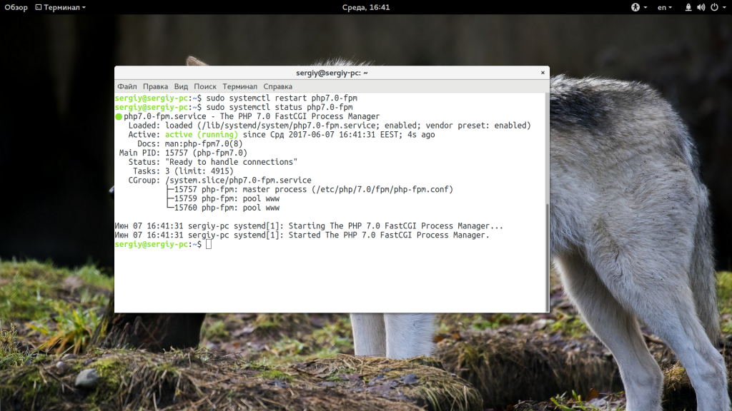 Допустим, у нас в качестве шлюза для генерации динамического содержимого используется php-fpm. Тогда нужно проверить запущен ли вообще этот сервис: