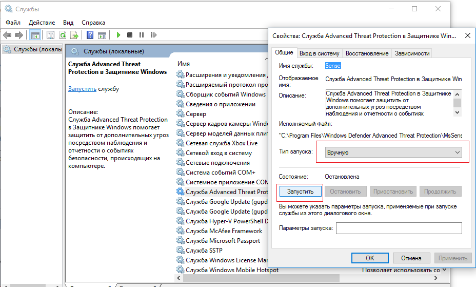 - Служба Advanced Threat Protection в Защитнике Windows (Windows Defender Advanced Threat Protection Service) — Sense