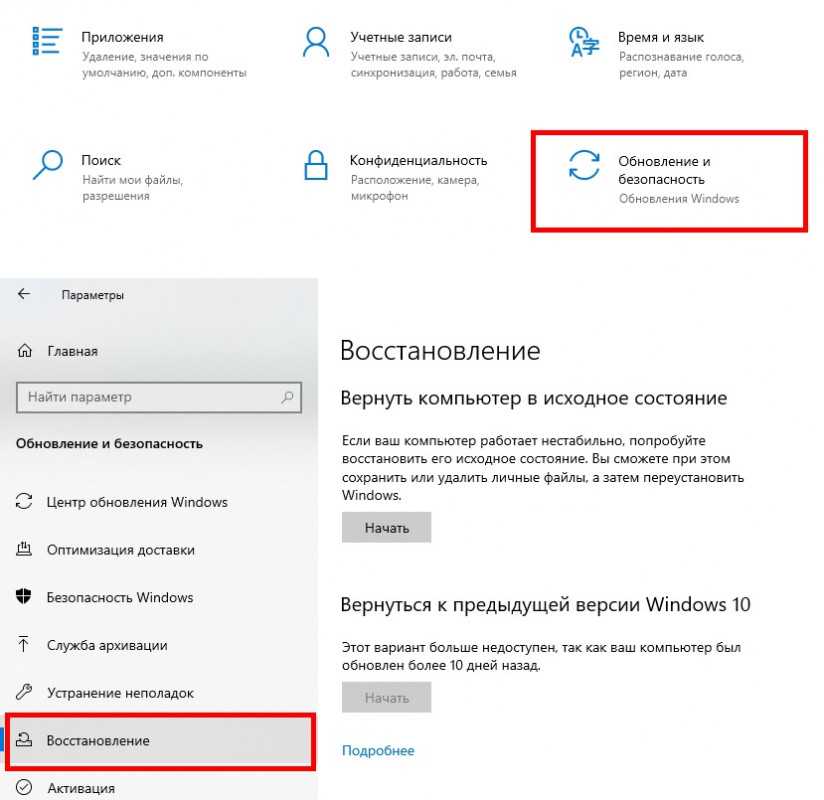 - Если ранее интернет работал, но вы совершили какие-либо действия: установили антивирус, какое-то приложение, или же ОС Windows установила новые обновления, то попробуйте вернуть эти изменения назад. Временно отключите антивирус, удалите новую программу, или откатите обновление через Настройки – Обновление и безопасность – Восстановление – Откат.