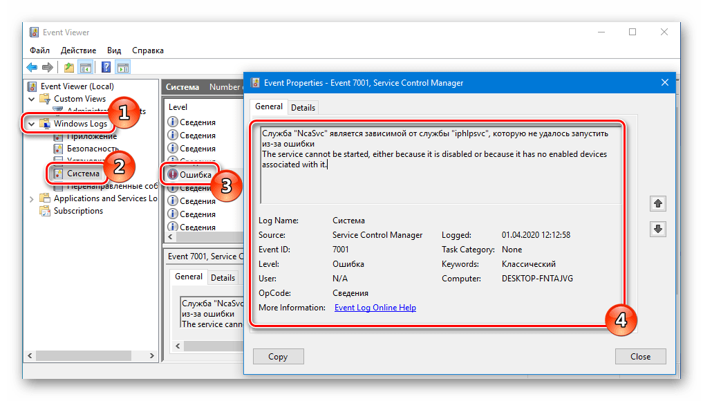 Теперь в середине окна можно будет отыскать ошибку и, кликнув по ней дважды, посмотреть подробности.