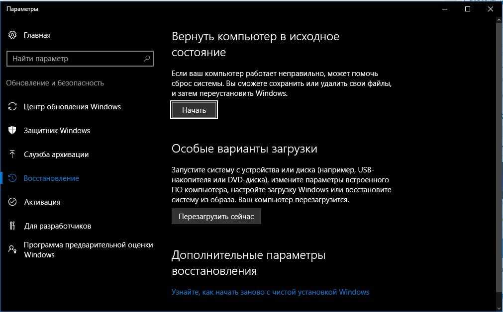 Сброс Windows. Есть функция, позволяющая вернуть Windows 10 к заводским настройкам. Ее можно найти по ключевому запросу «Вернуть компьютер в исходное состояние». Дальше нужно только следовать подсказкам системы.