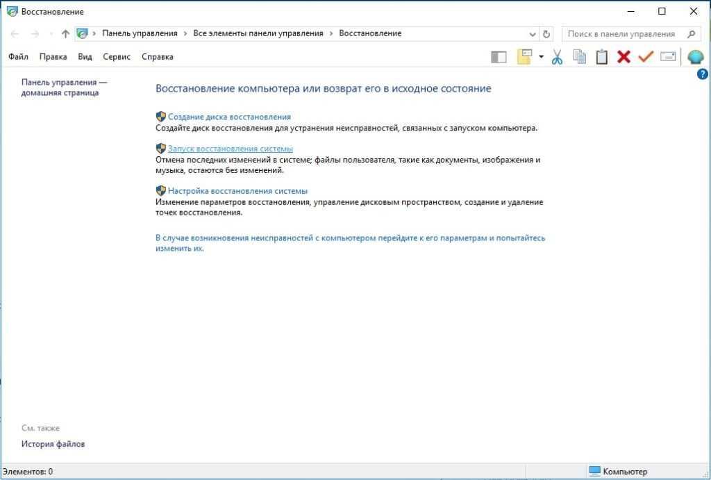 Восстановление системы. Инструмент восстановления системы – последняя надежда пользователя, не подразумевающая сброса Windows и потенциальную потерю полезных файлов. Чтобы запустить средство отката изменений, достаточно через поиск найти утилиту «Восстановление» (называется одним словом, все другие варианты ведут не туда), а затем выбрать точку и подождать. Мастер установки все сделает за нас.