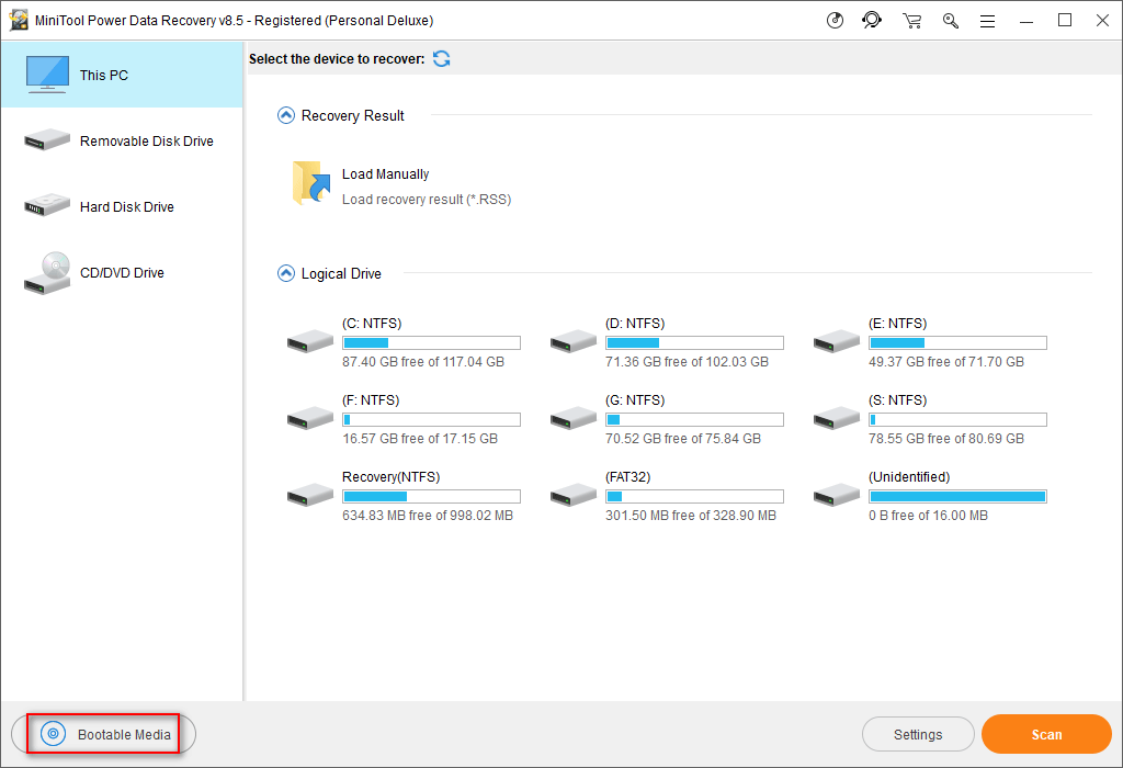 - Дважды щелкните диск или щелкните значок Сканировать кнопку, чтобы начать поиск файлов.