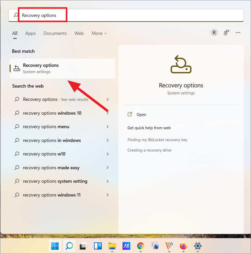 Щелкните меню «Пуск», найдите «Параметры восстановления» и выберите наиболее подходящий результат. Или откройте «Настройки» и выберите «Восстановление» на вкладке «Система».