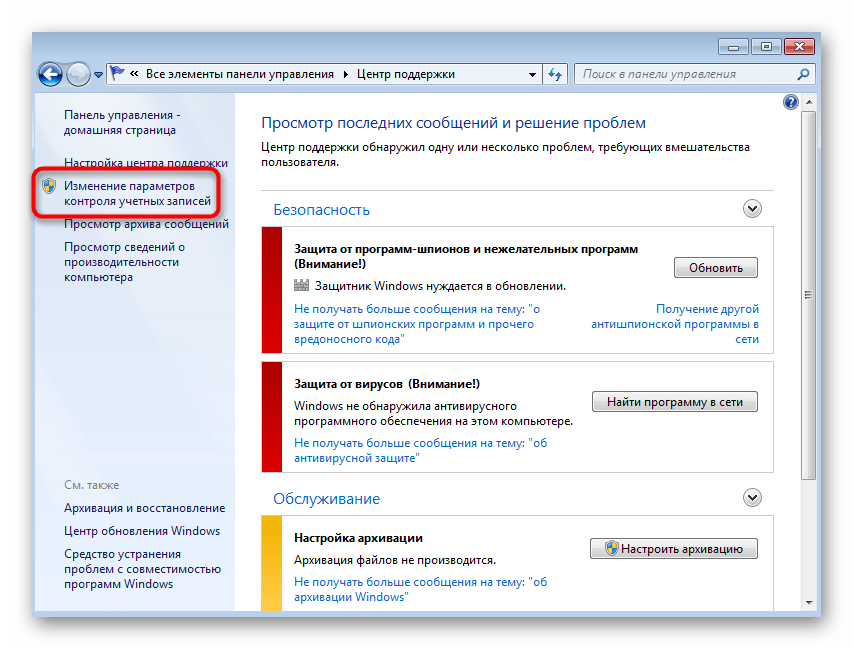 В нем переключитесь в «Изменение параметров контроля учетных записей», для которого тоже понадобятся права администратора. Об их получении мы рассказывали в предыдущем способе.