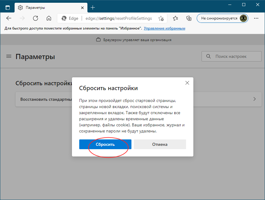 ↑ Сбросьте браузер к исходным настройкам