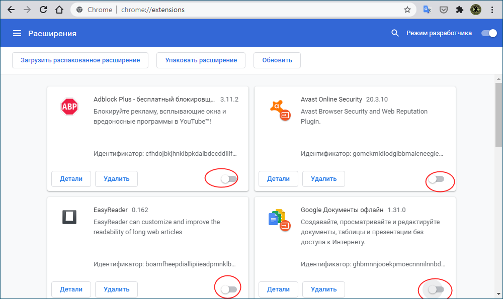 Решение №3 Отключение установленных расширений