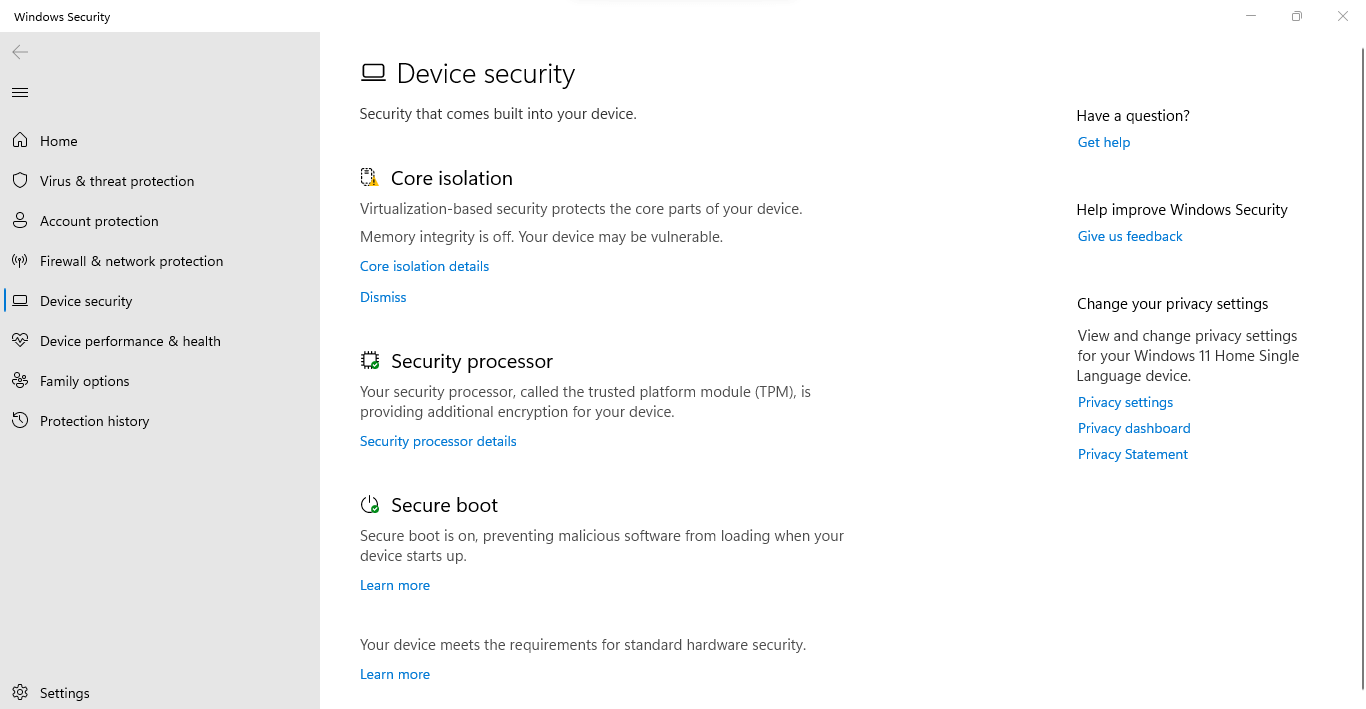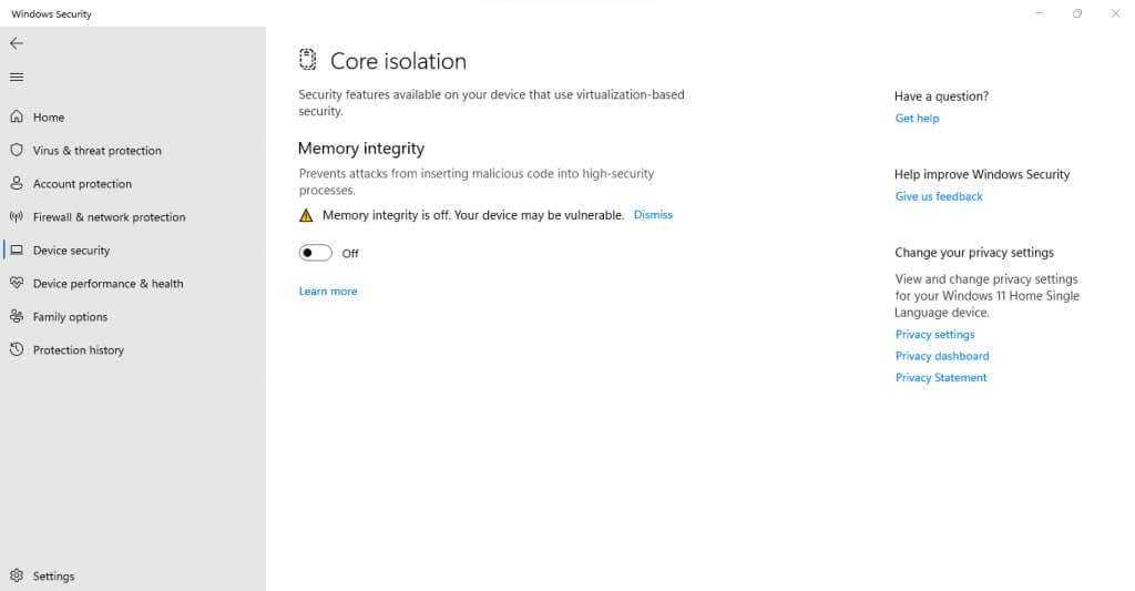 Most users don’t need the advanced security provided by Core isolation. Modern laptops have it disabled by default, as it conflicts with built-in software used to optimize hardware performance.