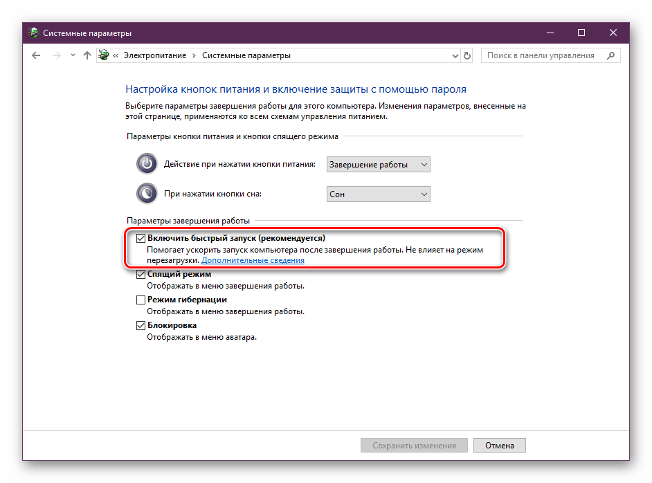 5. Снимите флажок в этой категории с надписью «Включить быстрый запуск (рекомендуется)».