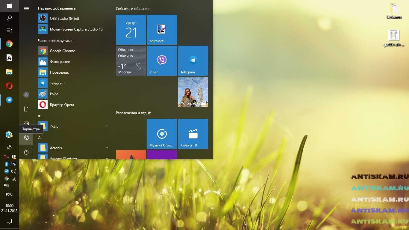- Нажмите на кнопку «Пуск» и выберите «Параметры» в меню.
