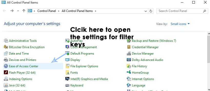 Чтобы устранить эту проблему, вам нужно изменить настройки Windows, чтобы игнорировать нажатия клавиш, вызванные быстрой последовательностью нажатий клавиш.