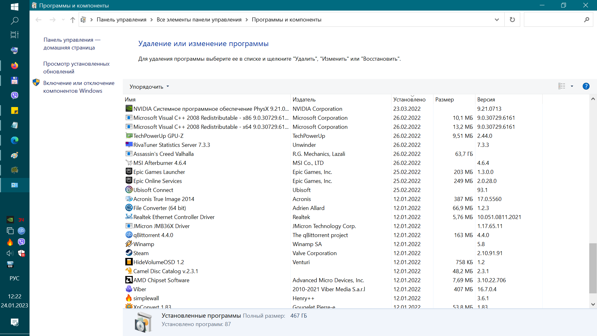 Первым делом стоит заглянуть в Программы и компоненты и посмотреть, нет ли ненужных утилит или игр, которые давно занимают место на диске и могут быть спокойно удалены. Наверняка найдется парочка игр, в которые вы уже давно не заходили и вряд ли будете продолжать играть в них. Но я для чистоты эксперимента трогать их не буду.