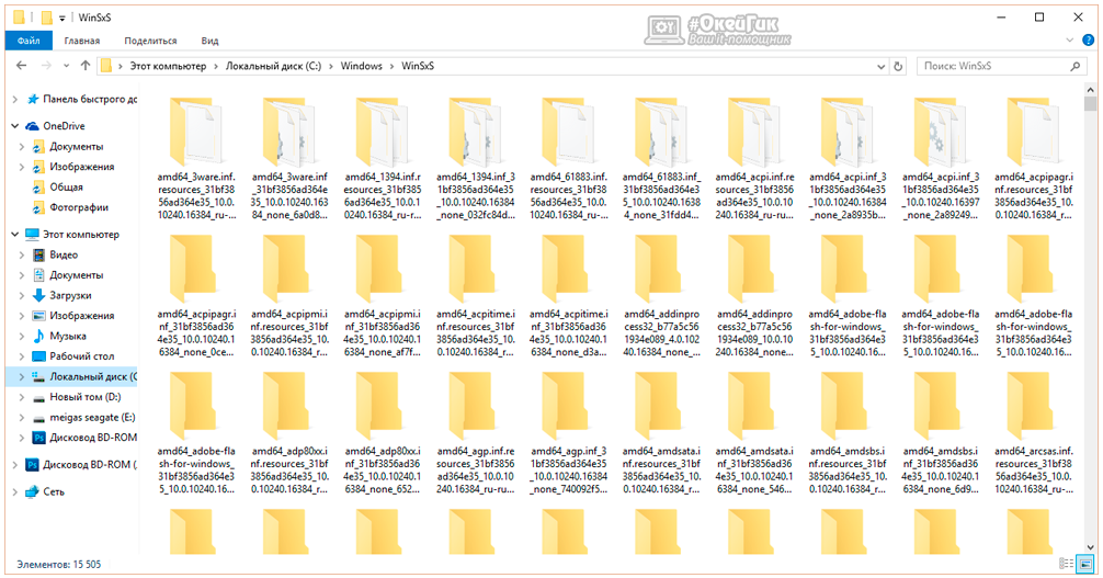 Папка WinSxS содержит файлы обновлений и резервные копии компонентов операционной системы. Со временем папка WinSxS начинает занимать много места на системном диске. Но удалять её ни в коем случае нельзя, необходимо воспользоваться одним из наших советов по очистке папки WinSxS в Windows 10. Наши способы работают также на предыдущих версиях операционной системы Windows. После очистки размер папки уменьшился в два раза, что уже хорошо учитывая первоначальный размер.