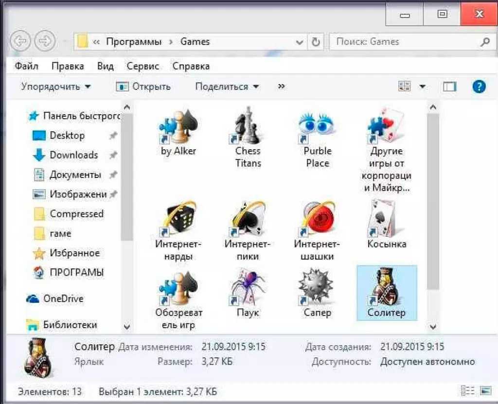Установка стандартных игр (пасьянс паук, косынка…) на Windows 8, 8.1, 10
