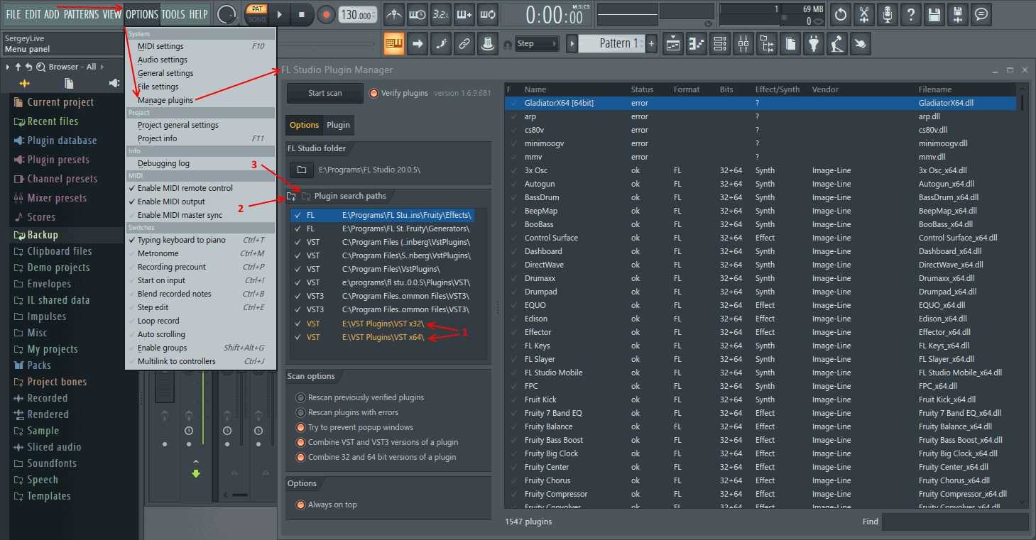 При расширении перечня возможностей FL Studio внимательно выбираем путь для установки дополнений и группируем их после обновления базы данных – с ростом списка в нём всё сложнее будет ориентироваться и искать нужные инструменты.
