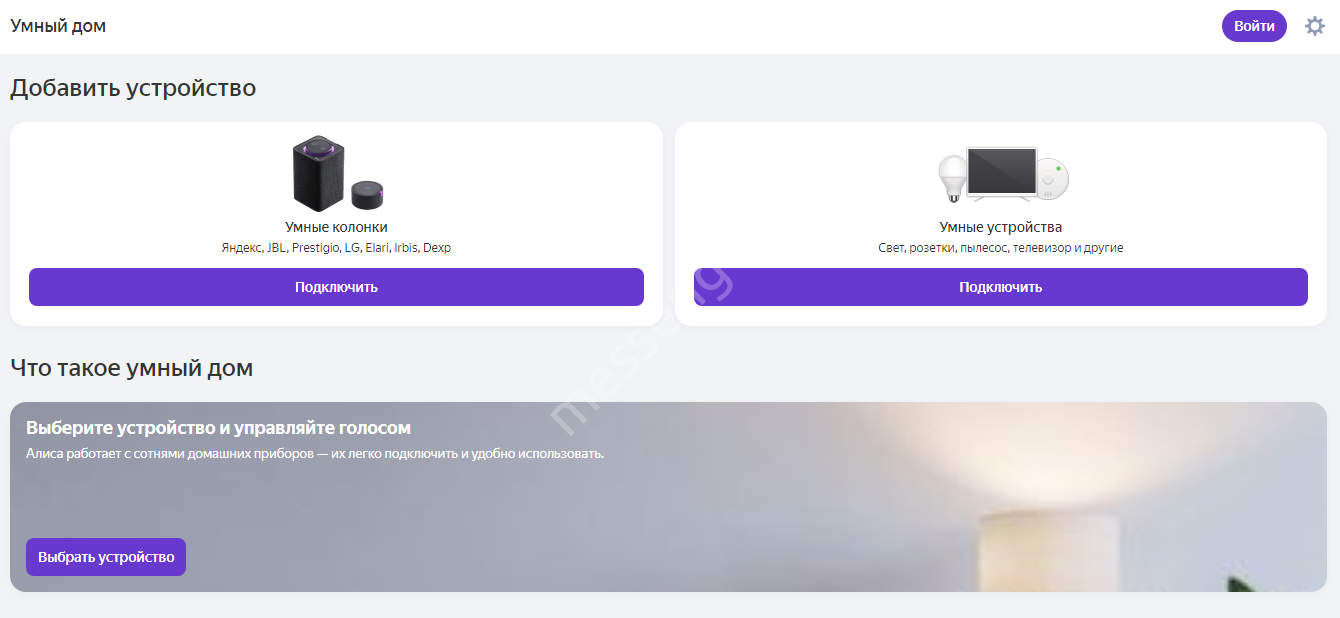 - Эта команда открывает вкладку «Умный дом» . В блоке умные колонки нажмите «Подключить» .