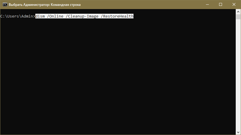 - Введите следующую команду: DISM.exe /Online /Restorehealth.