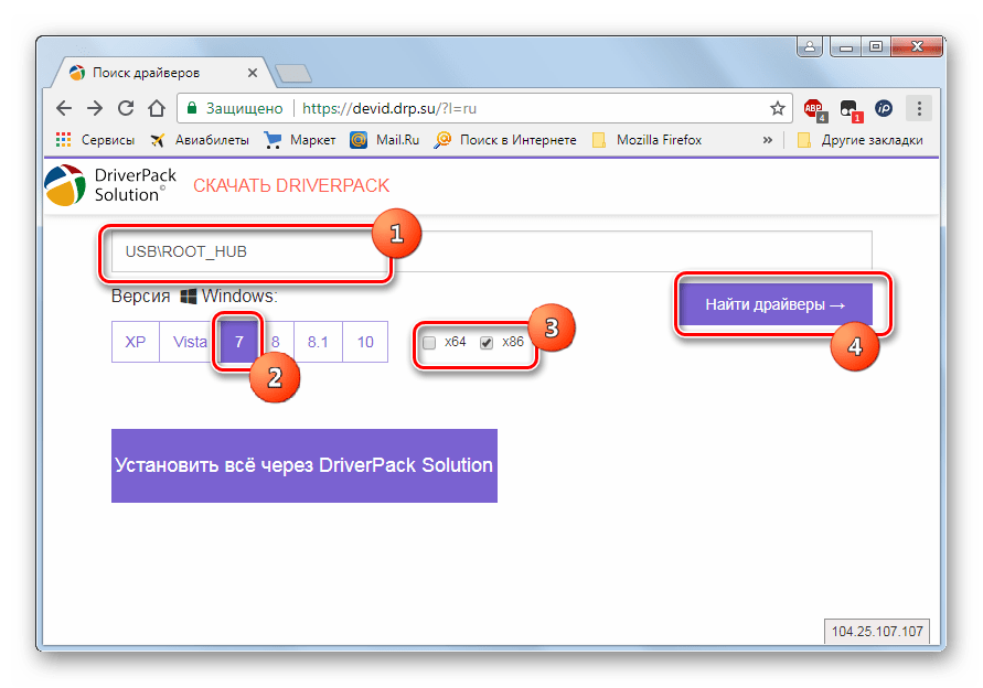 Если вы пользуетесь сервисом DevID DriverPack, то перед началом поиска вам нужно будет указать название ОС и размер.