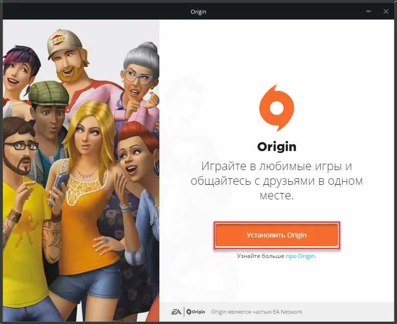 Откроется окно приложения, в котором потребуется нажать кнопку «Установить Origin»