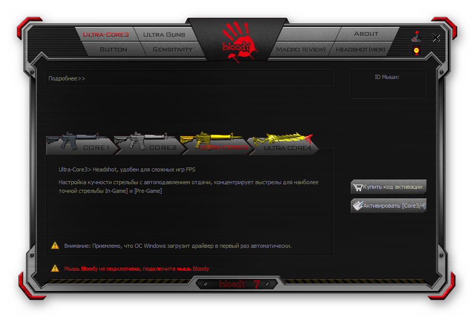 После установки можно сразу же запустить Bloody для проверки и настройки подключенных девайсов