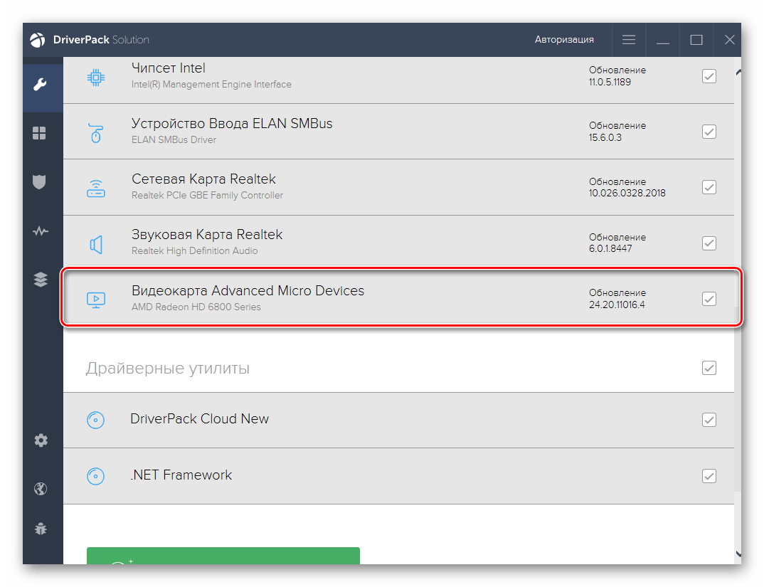 Следующий метод подходит всем тем пользователям, кто желает решить поставленную задачу в автоматическом режиме. Для этого сначала придется загрузить программу от сторонних разработчиков, которая предназначена для поиска и установки драйверов. Принцип взаимодействия с таким ПО достаточно прост: требуется только подключить девайс и запустить проверку обновлений файлов. Более детально об этом на примере DriverPack Solution читайте в отдельной статье на нашем сайте.