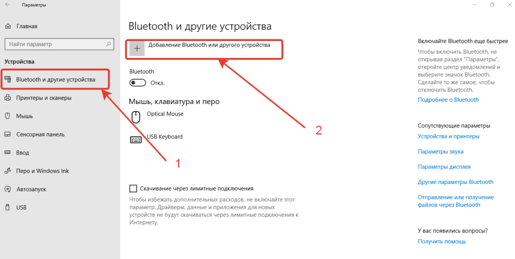 3. Кликните на «Добавление блютуз или другого устройства».